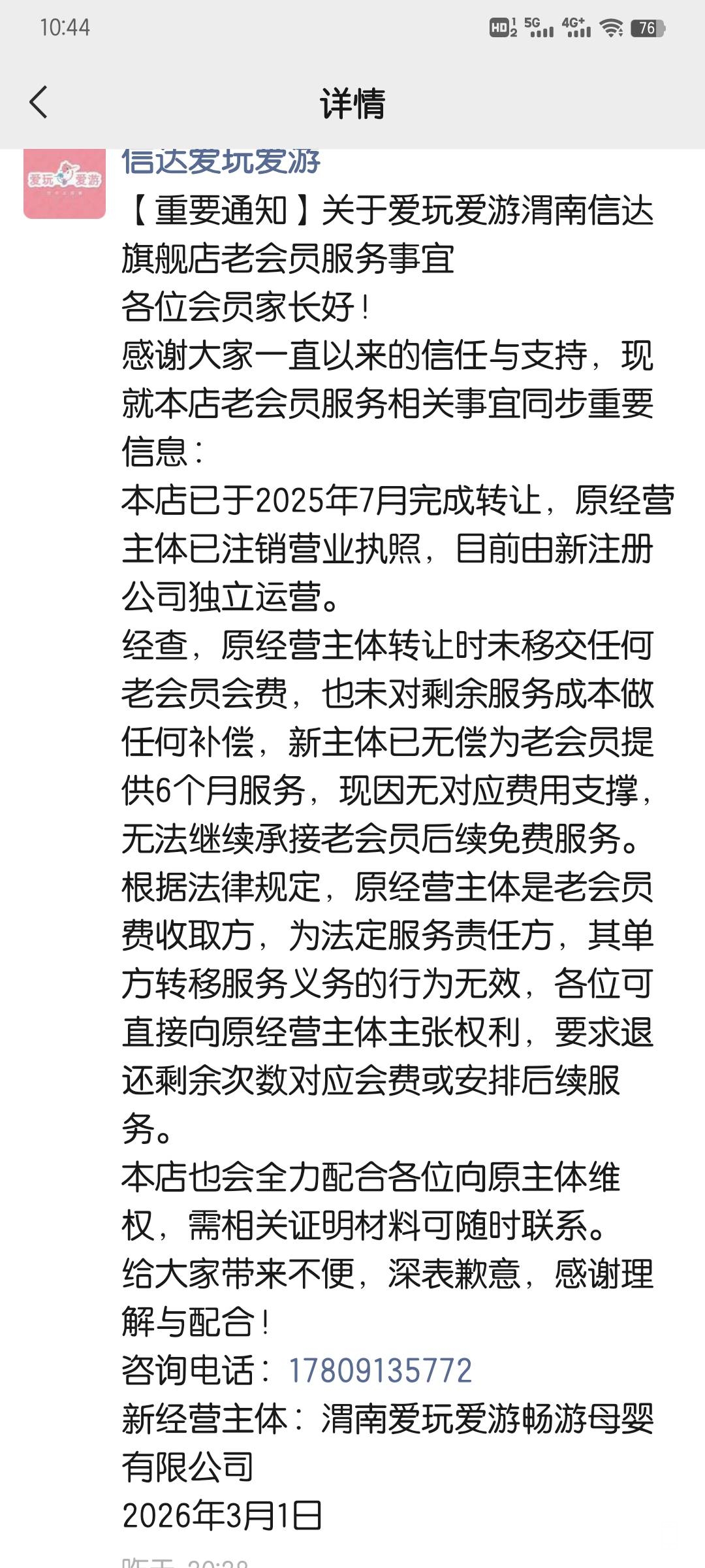 信达爱玩爱游孕婴店去年11月刚充会员,昨天看到说7月已转让,..