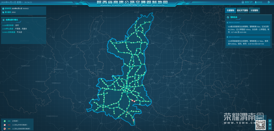 截至2026年1月12日17时,陕西全省高速公路路况汇总