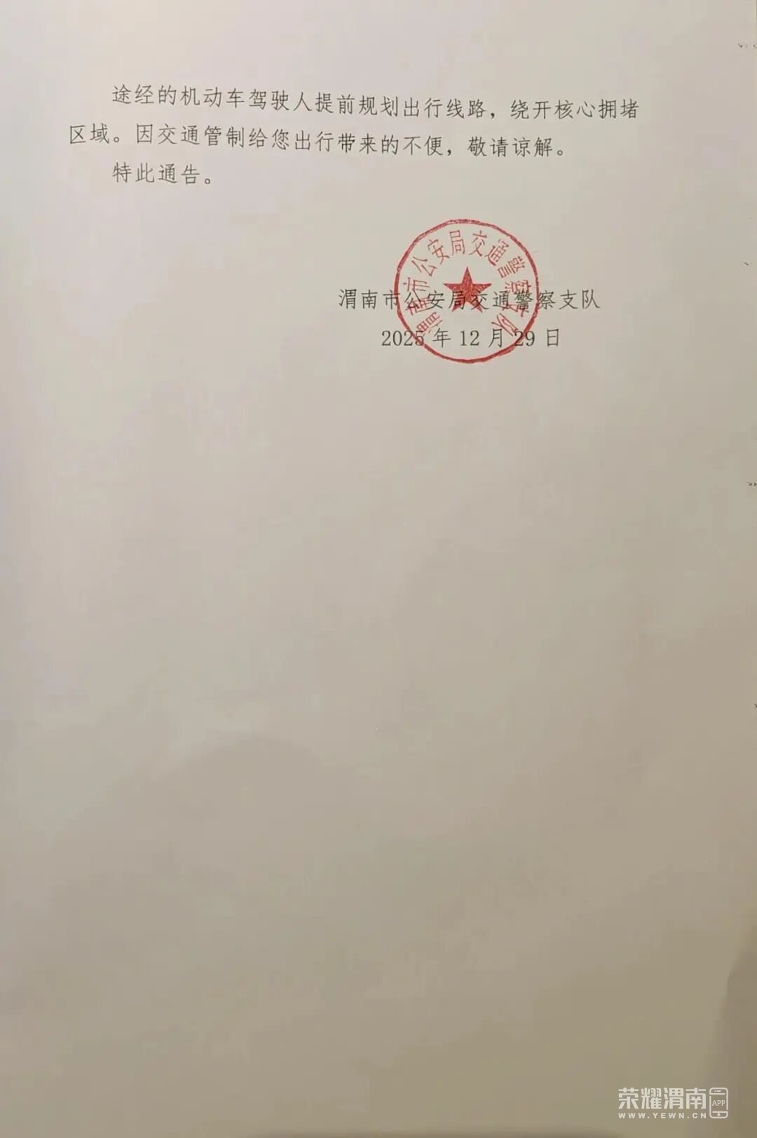 禁止机动车通行!元旦跨年夜,渭南吾悦广场周边部分道路临时交通..