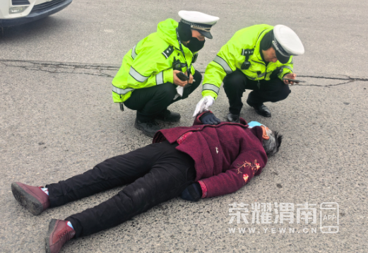 渭富桥南口老人晕倒,临渭交警及时救助