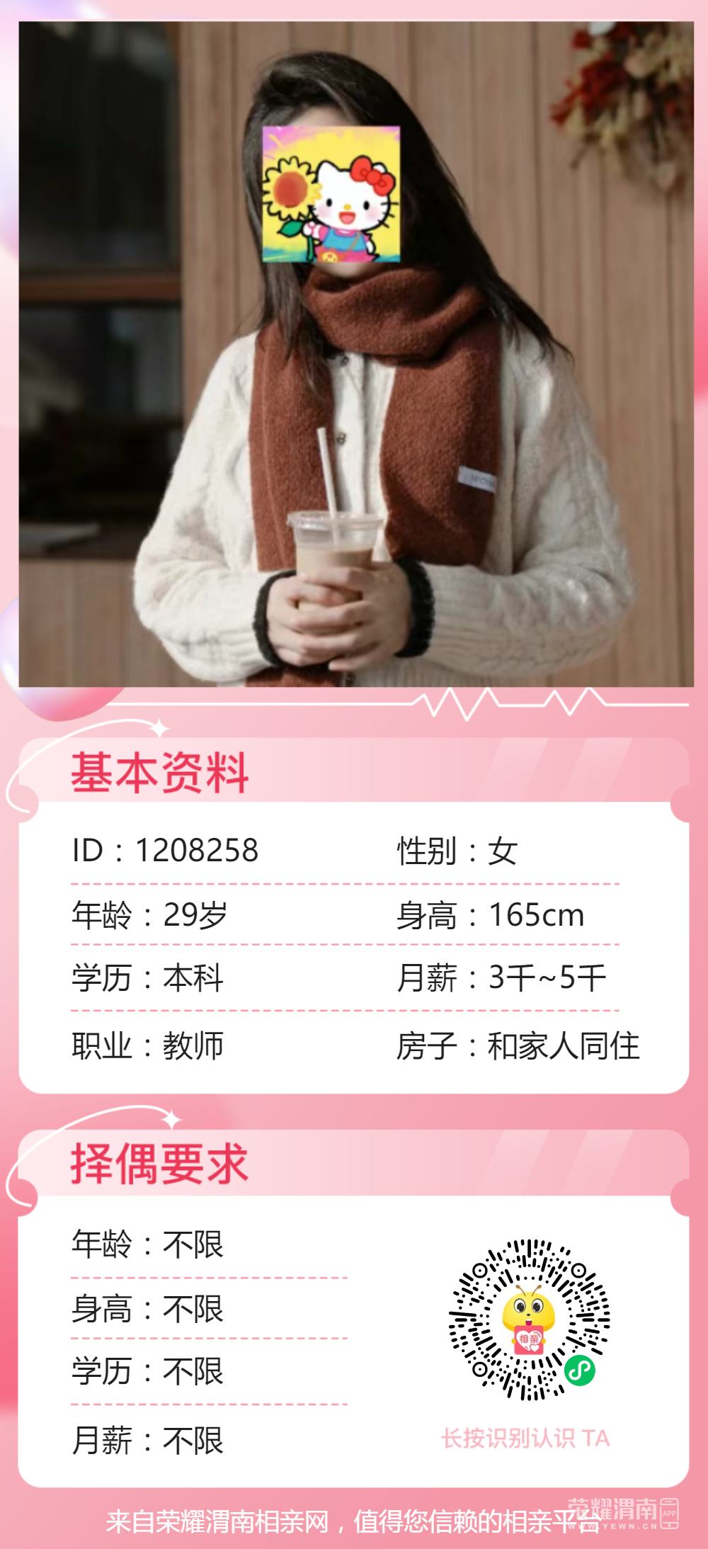 【3月25日女嘉宾推荐】97年从事教师行业女生,未婚,乐观自..