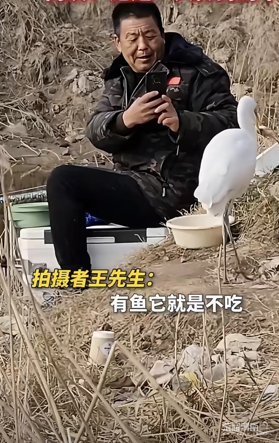 渭南大哥钓鱼偶遇“懂礼貌”的白鹭