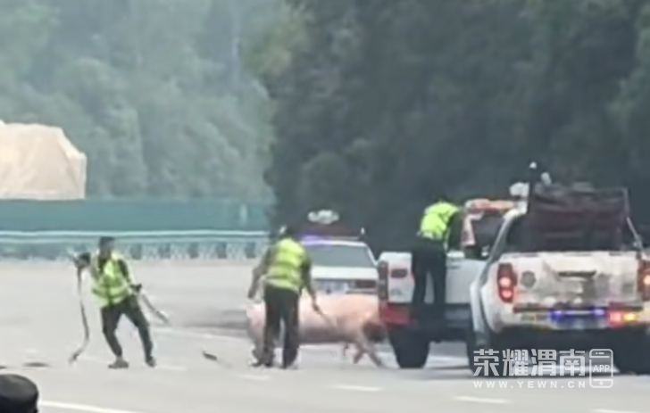 渭南高速上演“抓猪”大作战,网友:你永远不知道高速为啥堵