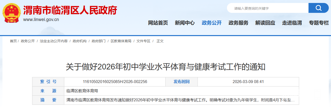 临渭区教育局最新通知!事关初中学业水平体育与健康考试