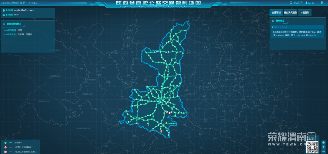 截至2026年3月9日17时,陕西全省高速公路路况汇总
