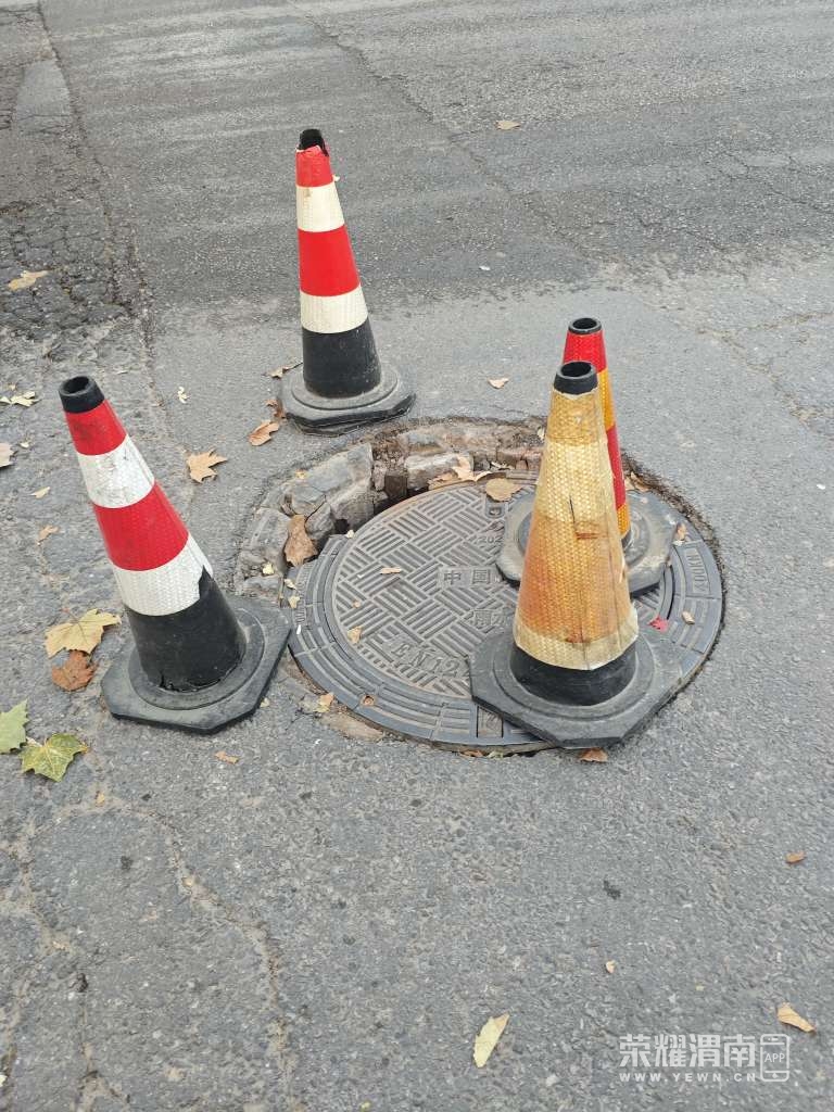 站北路和渭花路十字路口中间有井盖陷下去。希望有关部门赶紧处理..