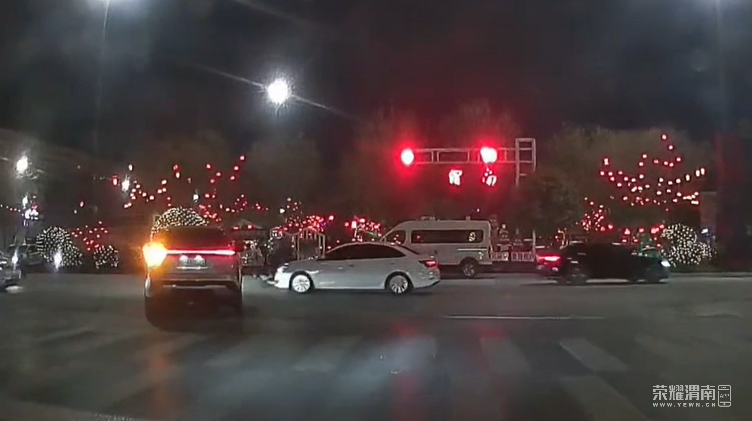 【视频】渭南火车站前有车闯红灯,中心广场西边有车被连蹭两下
