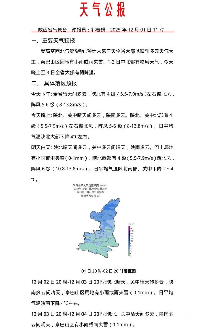 渭南-4℃!12月第一波寒潮来了,陕西预计有5次降温降水,干..