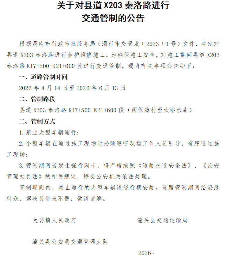 今日起!渭南一地这段路将进行交通管制