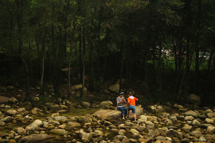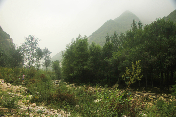 到达桥峪水库后方,有一条河道,前面的路还能走,不过不好再会车,就图个方便就地搭营了。