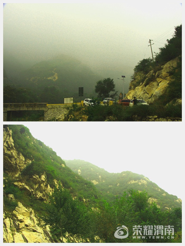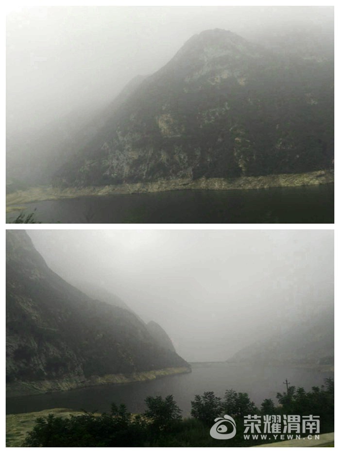 因为报有小雨,所以上山之后天气雾蒙蒙的,这是桥峪水库。