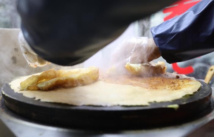 如今,他会根据顾客的要求,把一个煎饼做成两种味道,一种是正宗的天津煎饼,只夹油条不夹菜。另一种符合西安本地口味的煎饼,就是夹薄脆馃子和生菜。虽然一个煎饼上做出两种味道,费时费力,但是刘利戈认为,给顾客的第一印象很重要,“顾客喜欢吃什么味道,我就改进,他们觉得好吃,我也就满足了”。