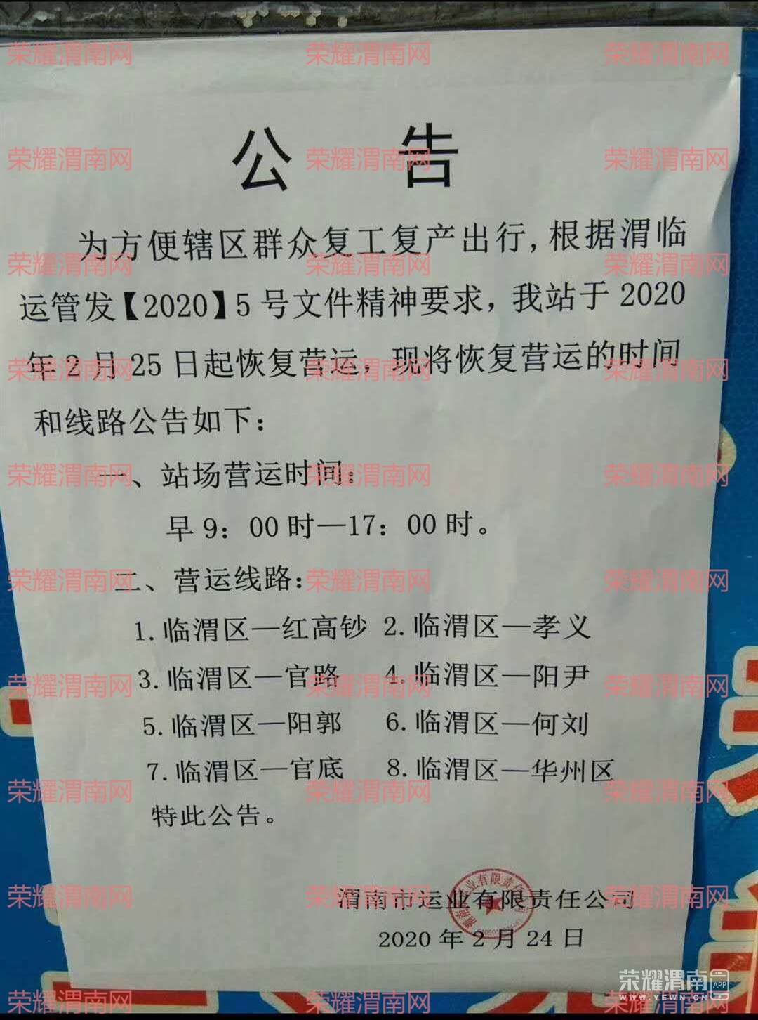 [生活资讯] 25日起!渭南临渭区至孝义、阳郭等几个镇班车开通!快来看看有没有你家那趟…