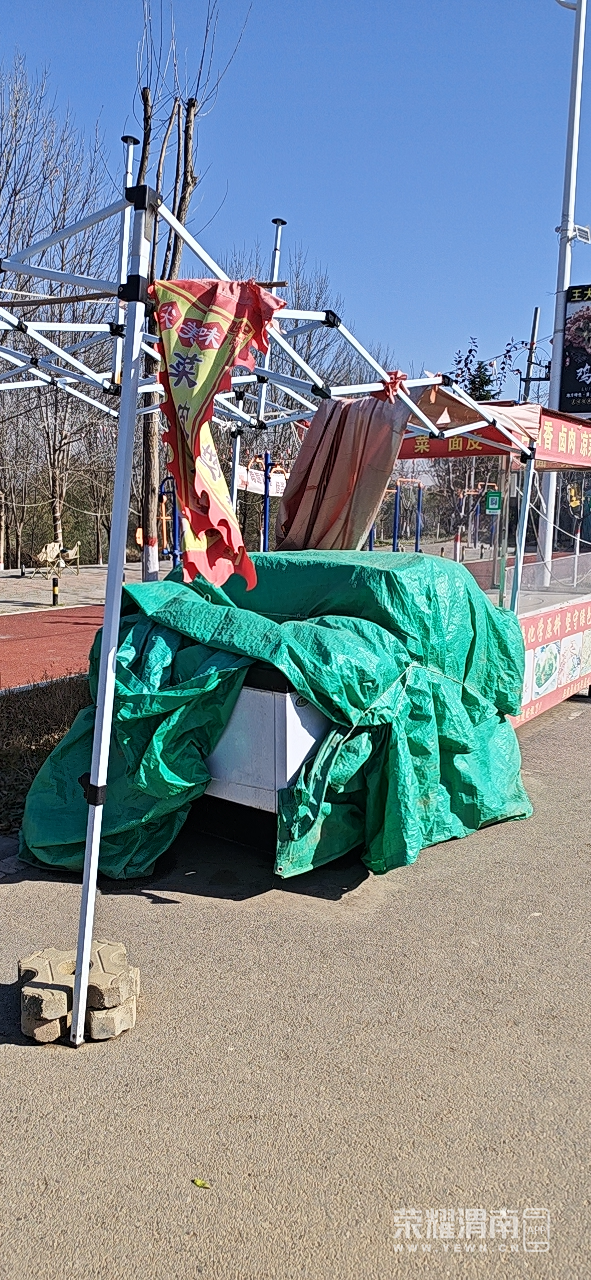 [所见所闻] 渭南河堤南路有一些棚子搭在路面上,散步还得绕开
