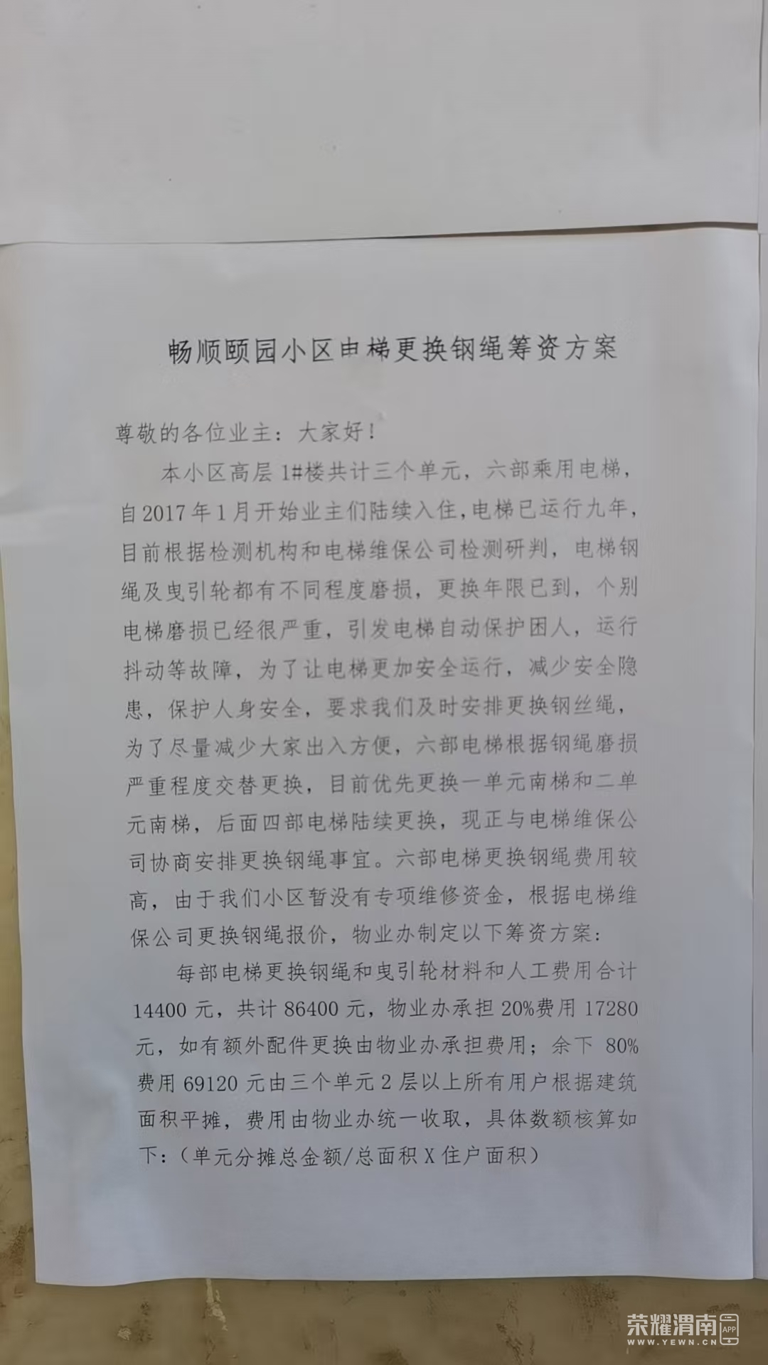 [维权投诉] 前进路畅顺颐园小区维修电梯要业主均摊费用,有这道理吗?