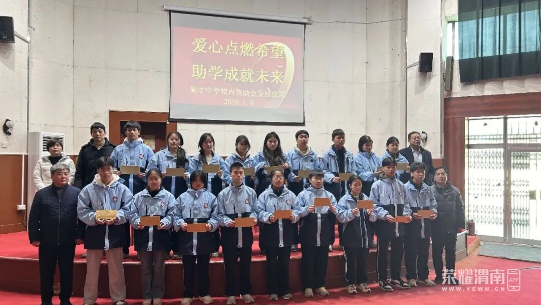 寒冬时节,暖意融融。为切实助力家庭经济困难学生成长成才,传递学校的关怀与温暖,2026年1月9日,渭南市集才中学以“爱心点燃希望 助学成就未来”为主题的校内资助金发放仪式顺利举行。