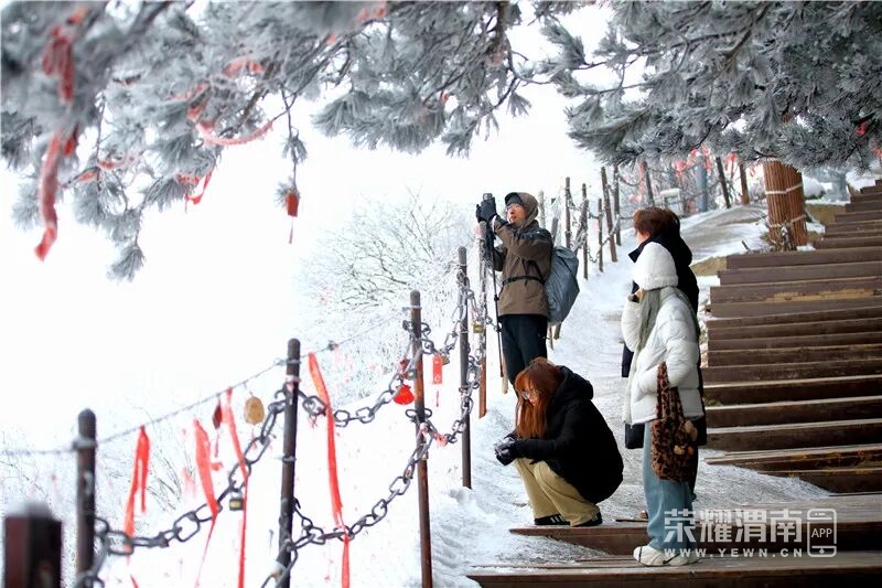 2026年1月1日,渭南迎降雪天气,雪后华山银装素裹、游客宛若置身仙境。