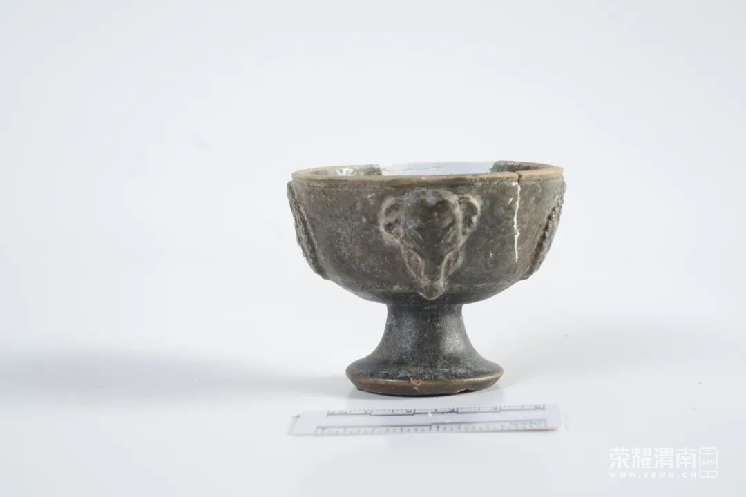 绿釉高足陶杯