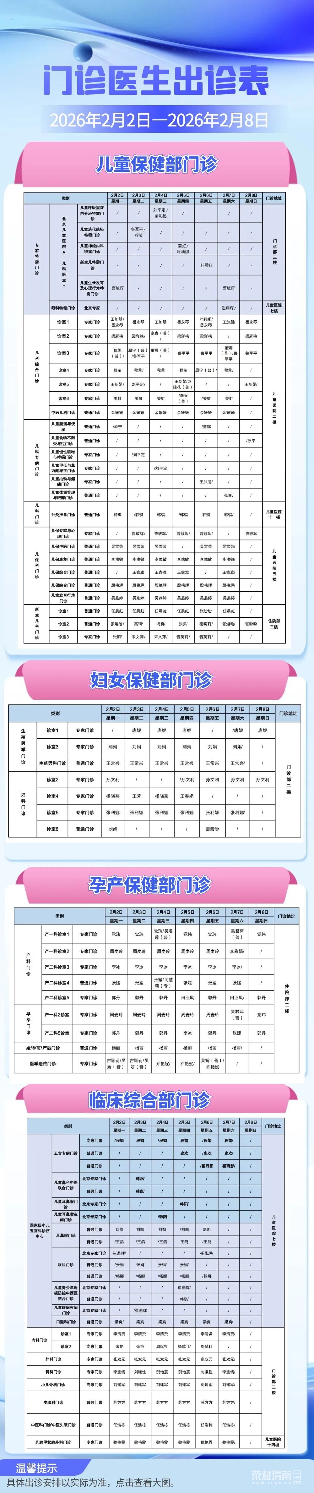 渭南市妇幼保健院2025年9月29日—10月5日门诊安排