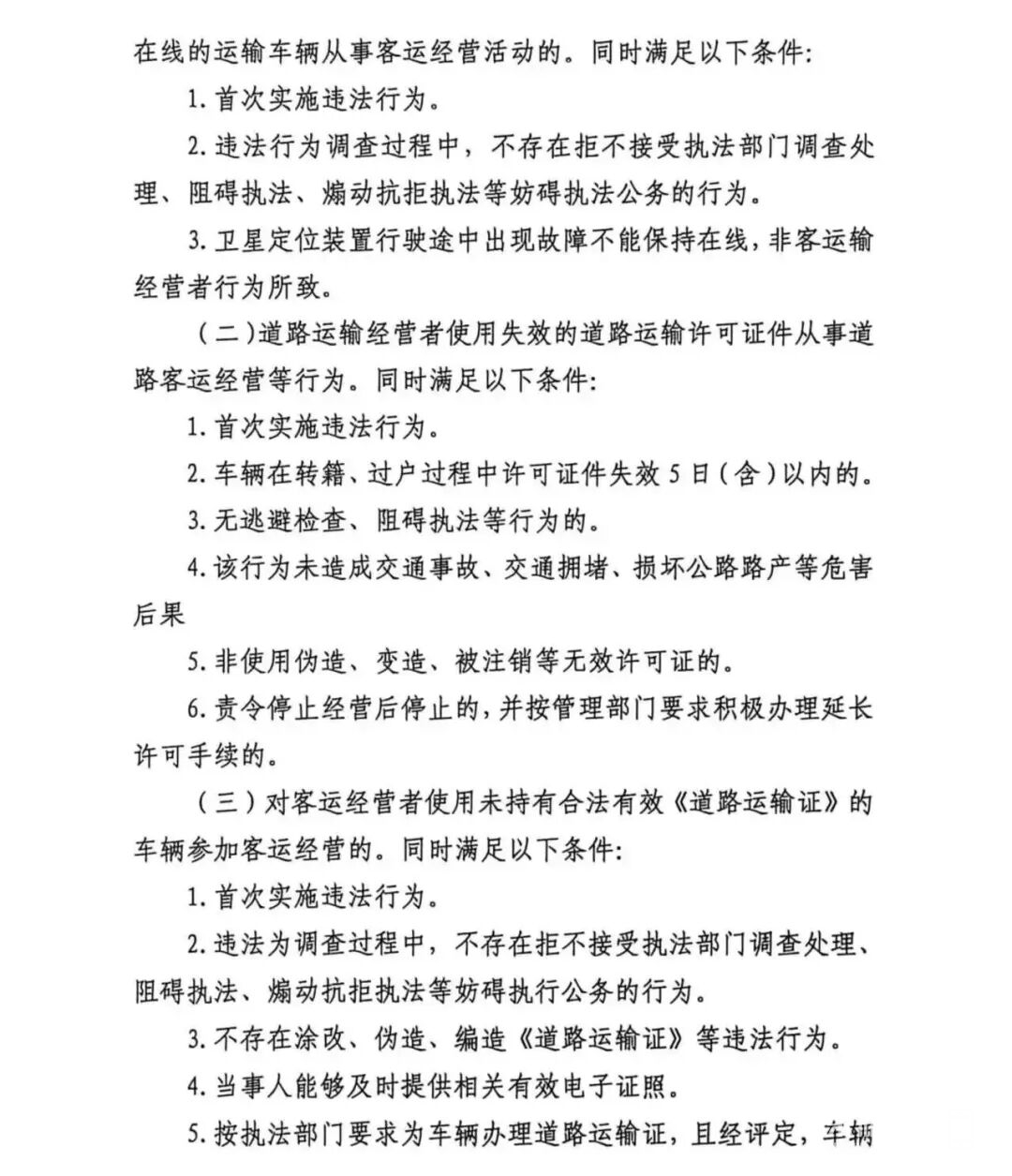 (二)道路运输经营者使用失效的道路运输许可证件从事道路客运经营等行为。同时满足以下条件: