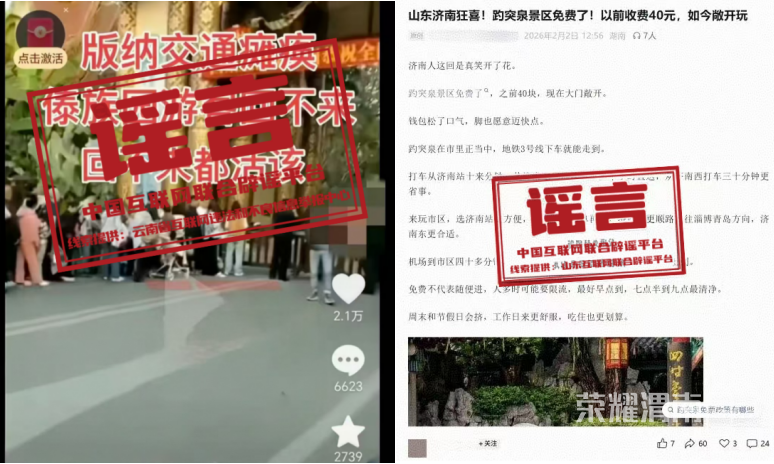 辟 谣 云南景洪傣族园景区交通瘫痪?山东济南趵突泉景区免费了?均为假!详情:近日,互联网平台出现“游客在景洪市傣族园景区排队上车至深夜,版纳交通瘫痪”““山东济南狂喜!趵突泉景区免费了!以前收费40元,如今敞开玩”等信息,引发关注。经核实,傣族园相关网传视频部分内容为旧闻翻炒,与当前景洪市交通运行实际情况严重不符。而趵突泉景区目前严格按照既定收费标准执行正常收费管理,各类免票、优惠政策按现行规定正常实施,网传“趵突泉景区免费”为虚假信息。(来源:“网信云南”微信公众号、山东互联网联合辟谣平台、济南互联网联合辟谣平台)详情:近期,有网民发布“通过河北智慧医保小程序申请领取500元分娩补贴(助)”相关信息,引发关注。经核实,河北省及各市医疗保障局均未出台“分娩补贴(助)”相关政策,也未在官方渠道发布此类宣传报道。上述网络内容为虚假信息,请勿轻信。河北智慧医保小程序中“生育医疗费用报销”模块用于在省外住院分娩不能直接结算的参保人进行手工报销申报,“生育津贴申报”模块用于符合享受生育津贴申领条件的参保人员进行生育津贴申报。(来源:“河北省医疗保障局”微信公众号)详情:正确写法应为“柑”,“”(pā)是四川方言,意为“软”,形容其果皮松软易剥的特性;但因方言字输入法难寻,“耙耙柑”成为流传最广的规范写法。这个品种的正式名称应该叫“春见”。作为晚熟柑橘中的“明星”品种,“春见”上世纪90年代引入我国后,在四川眉山、蒲江等地落地生根,成为地理标志产品。四川方言称怕老婆的男人为“耳朵”。因为“春见”果皮软,易剥皮,四川当地人称之为“柑”,这一称呼传开后,春见的名称反而不常说了。写作“耙耙柑”“粑粑柑”“杷杷柑”,都是无法表达“柑”这种水果的特性的。(来源:中国青年报) 通 报 河南安阳通报4起“清朗”系列专项行动典型案例详情:为深入推进“清朗”系列专项行动,持续加强“自媒体”整治,强化网络综合治理,河南安阳网信、公安等部门强化联动,针对谣言、不实信息等内容,通过及时辟谣、积极处置,有效消除负面影响,营造清朗网络空间。现将有关案例公布如下: