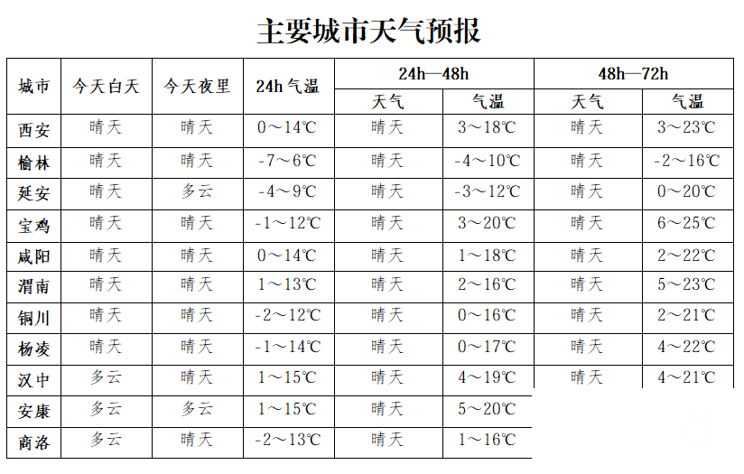 陕西具体天气预报