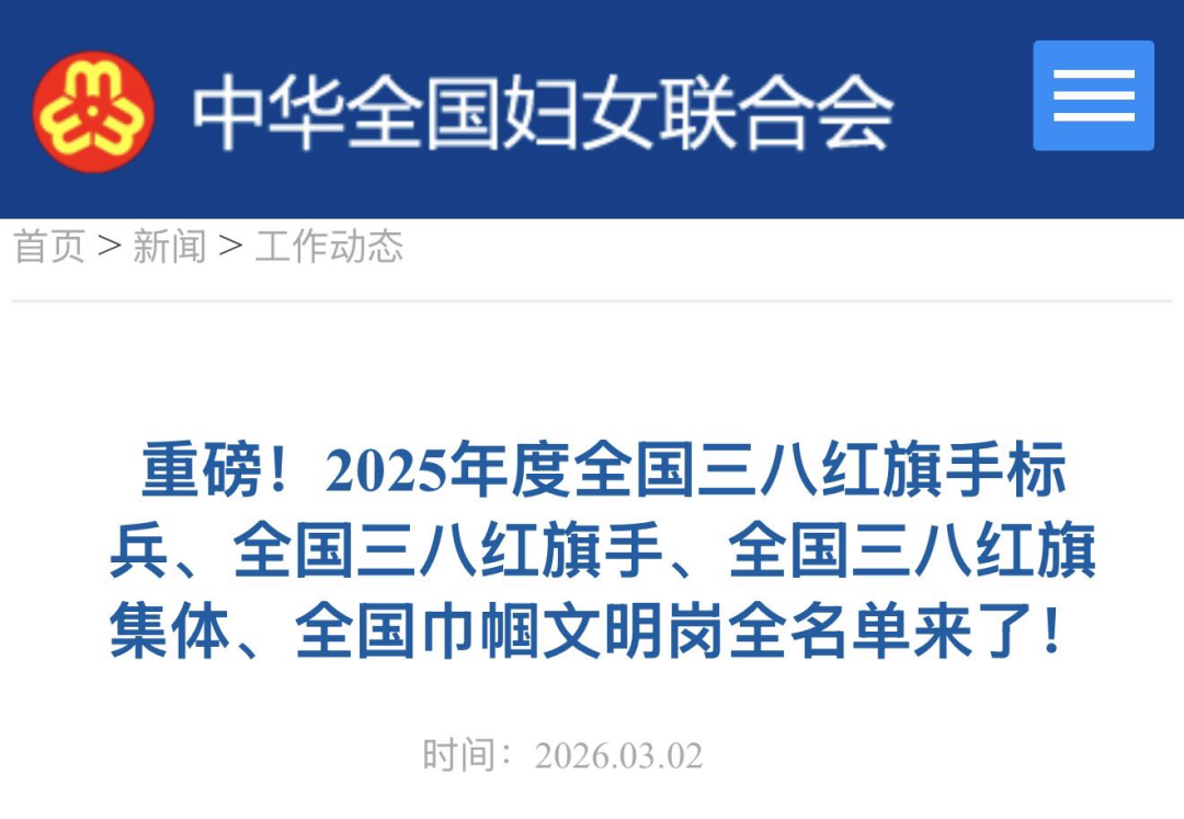 2025年度全国三八红旗手标兵、全国三八红旗手、全国三八红旗集体、全国巾帼文明岗全名单