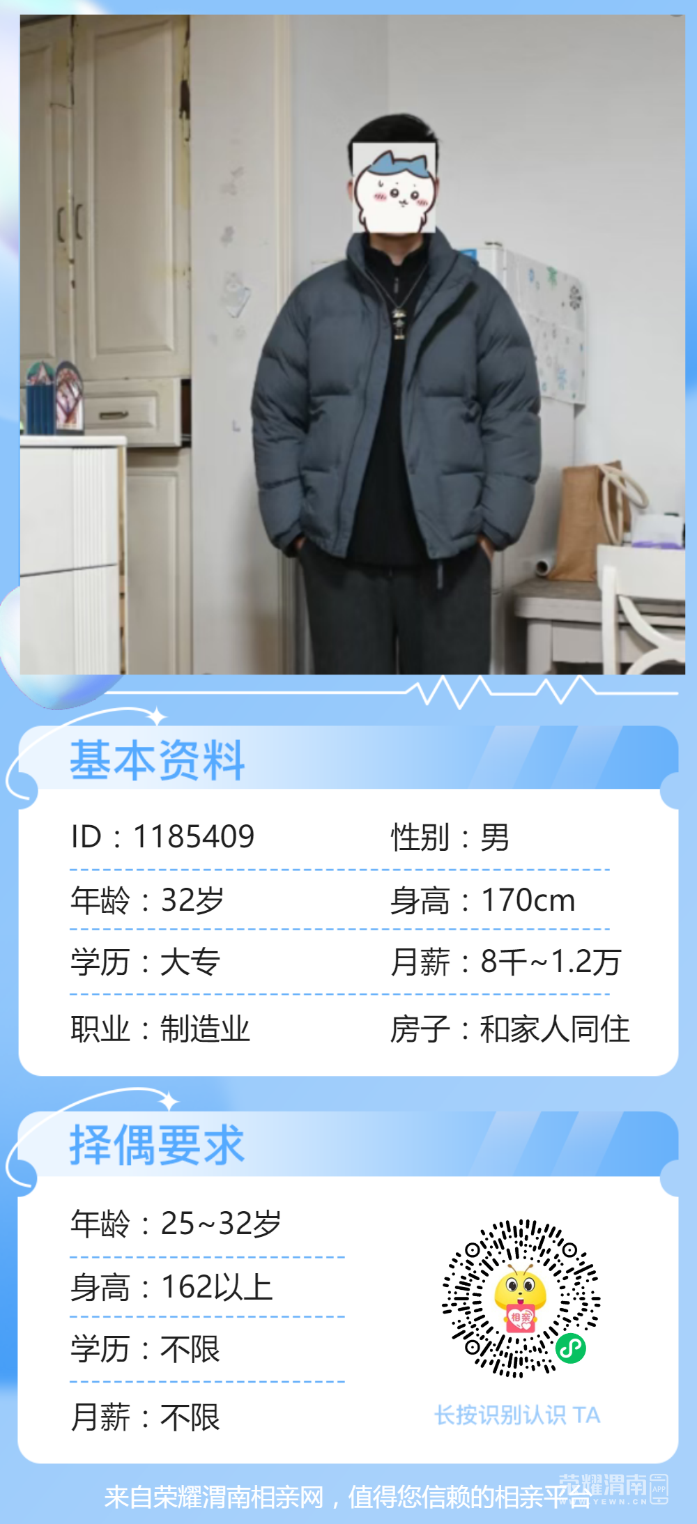 [男神推荐] 【3月26日男嘉宾推荐】94年未婚男生,临渭区人,制造业,性格稳定,期待与你相遇!