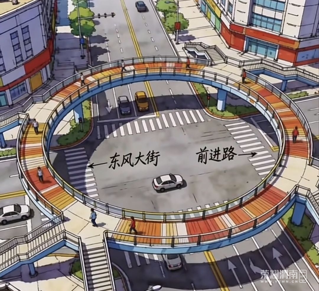 2026-2030年拟在东风大街与前进路十字建设环形天桥一座。