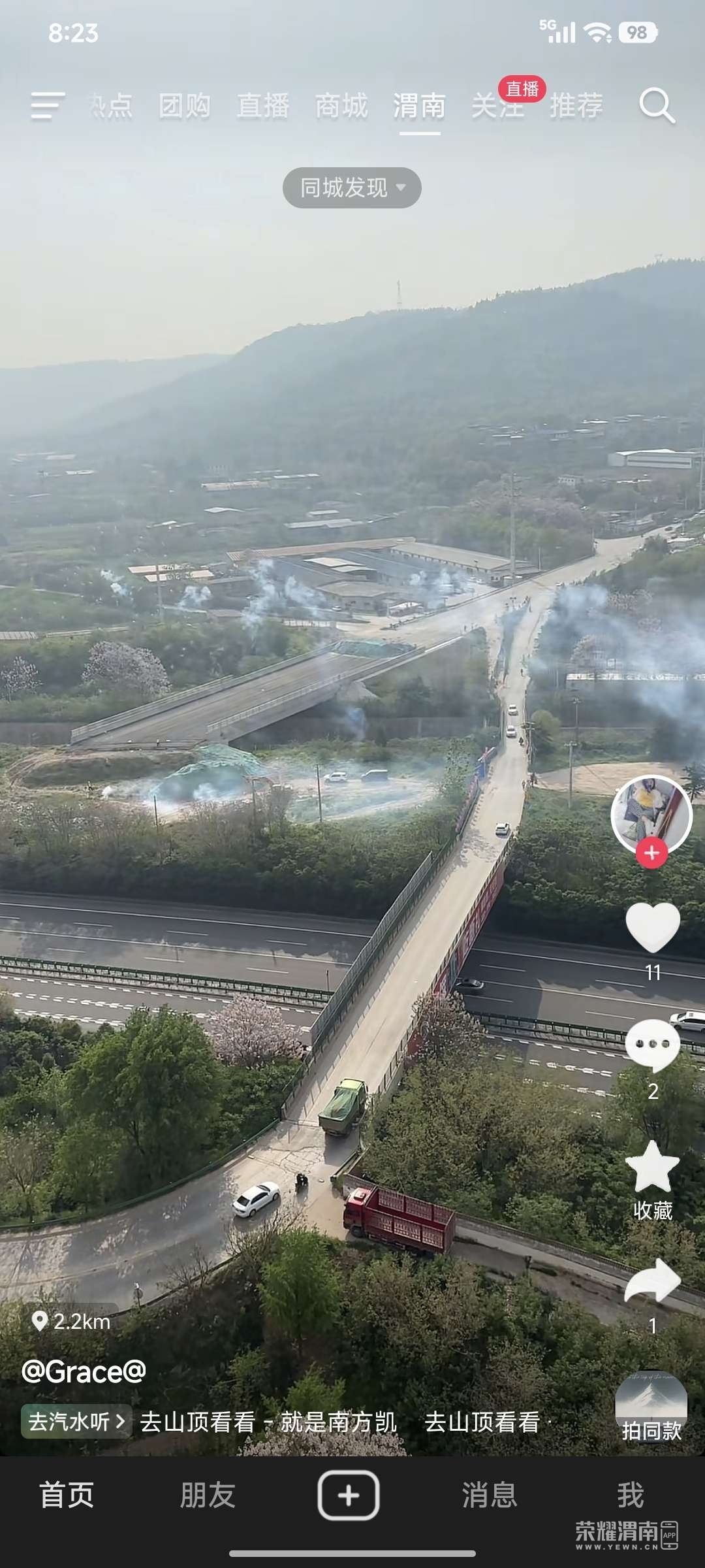 陕西渭南:槐树成荫 车流滚滚 和谐安康