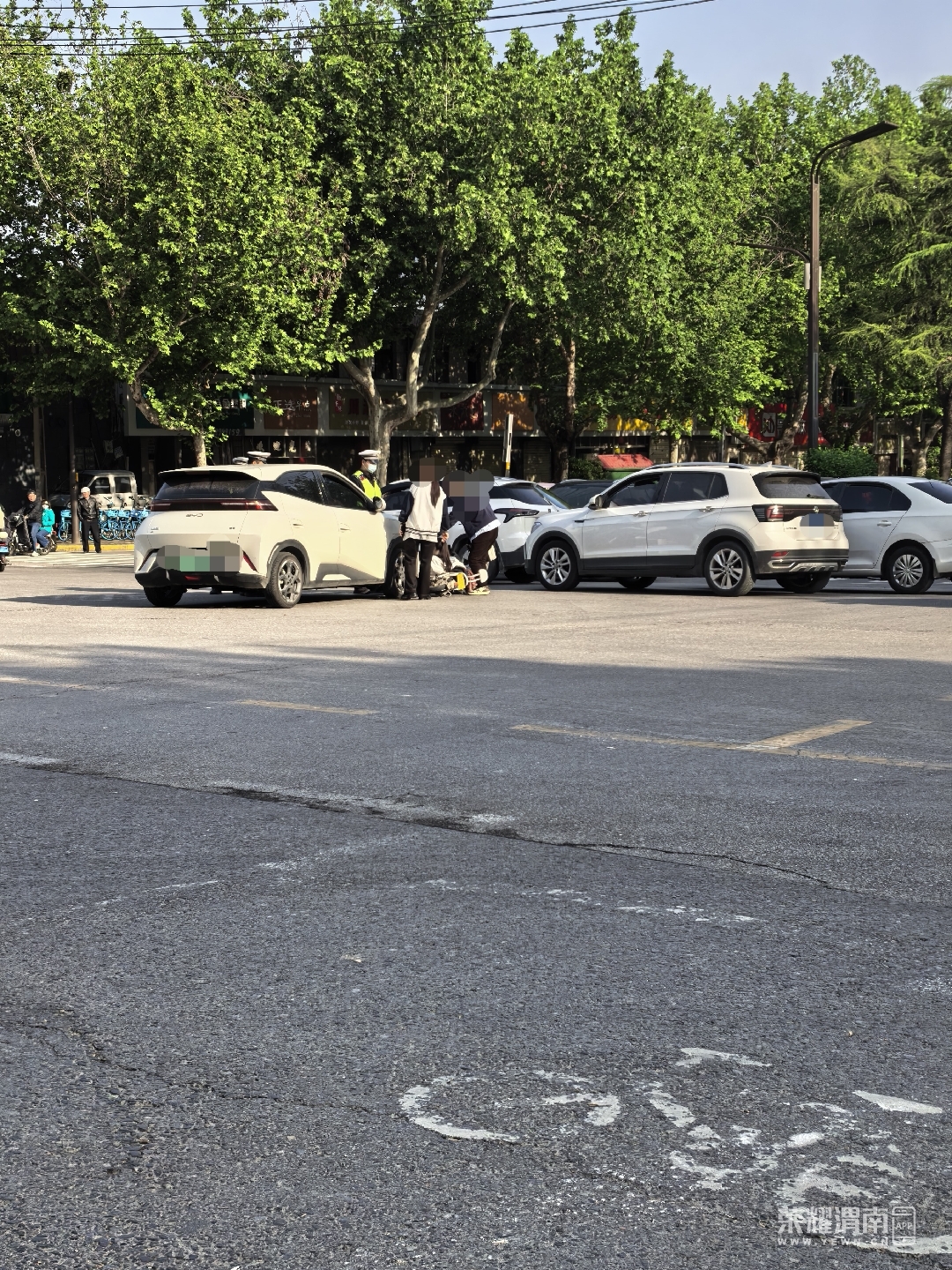今天早上8点多前进路和华山大街十字,一私家车和一辆电动自行车相撞,上班上学高峰出行注意安全。