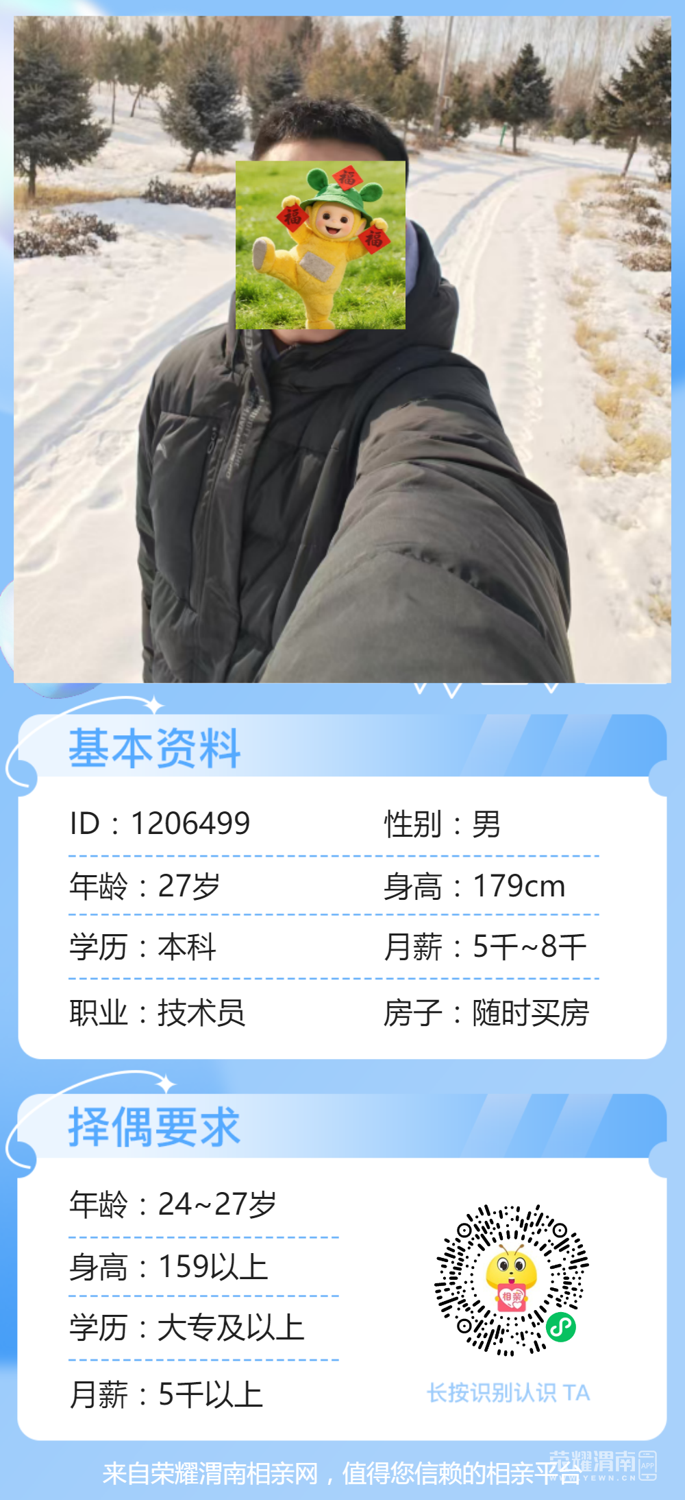 [男神推荐] 【4月23日男嘉宾推荐】27岁未婚技术员,收入稳定,有点社恐,想找开朗的另一半!