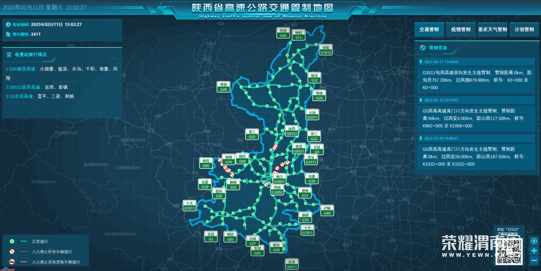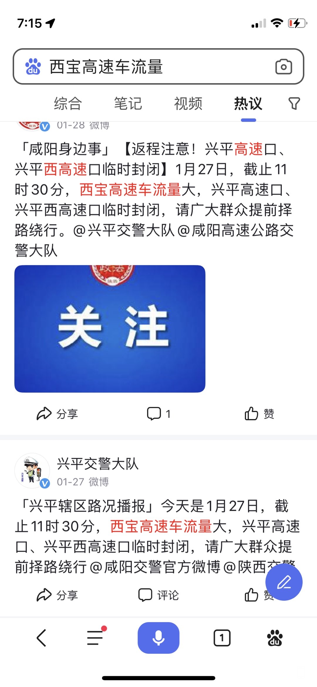我们看看微博,因为西宝高速车流量大都关闭了临西高速