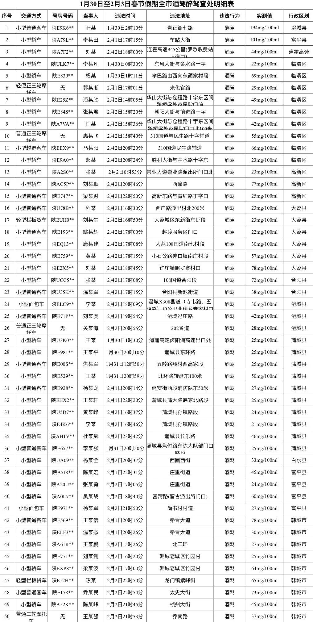 曝光!渭南春节假期查处50起酒驾!快看看有你眼熟的吗?