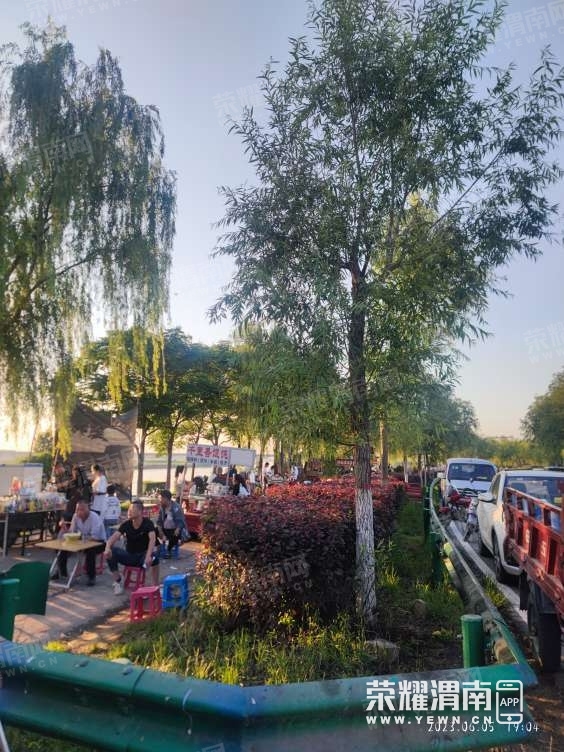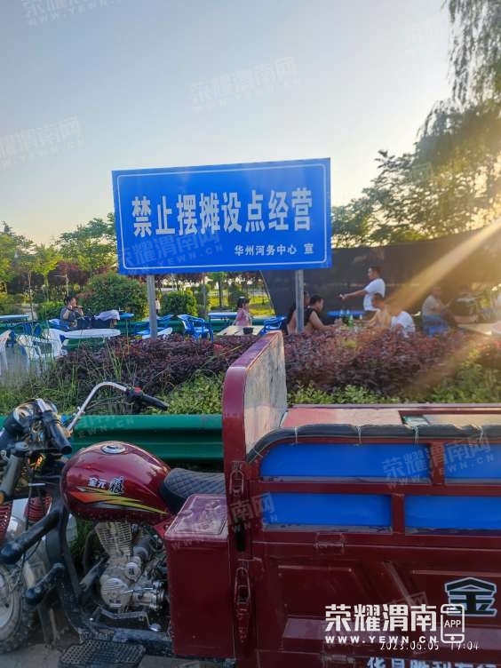 [爆料有奖] 渭南河堤路上很多人摆摊,人来人往的很热闹,这个牌子是不是可以撤掉呀?