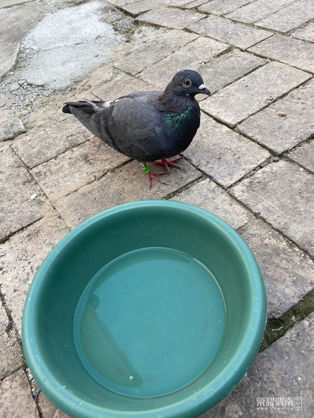 一大早,院子里飞来了一只鸽子,可能是饿了,喂食,喂水,歇歇飞吧,找你的主人去