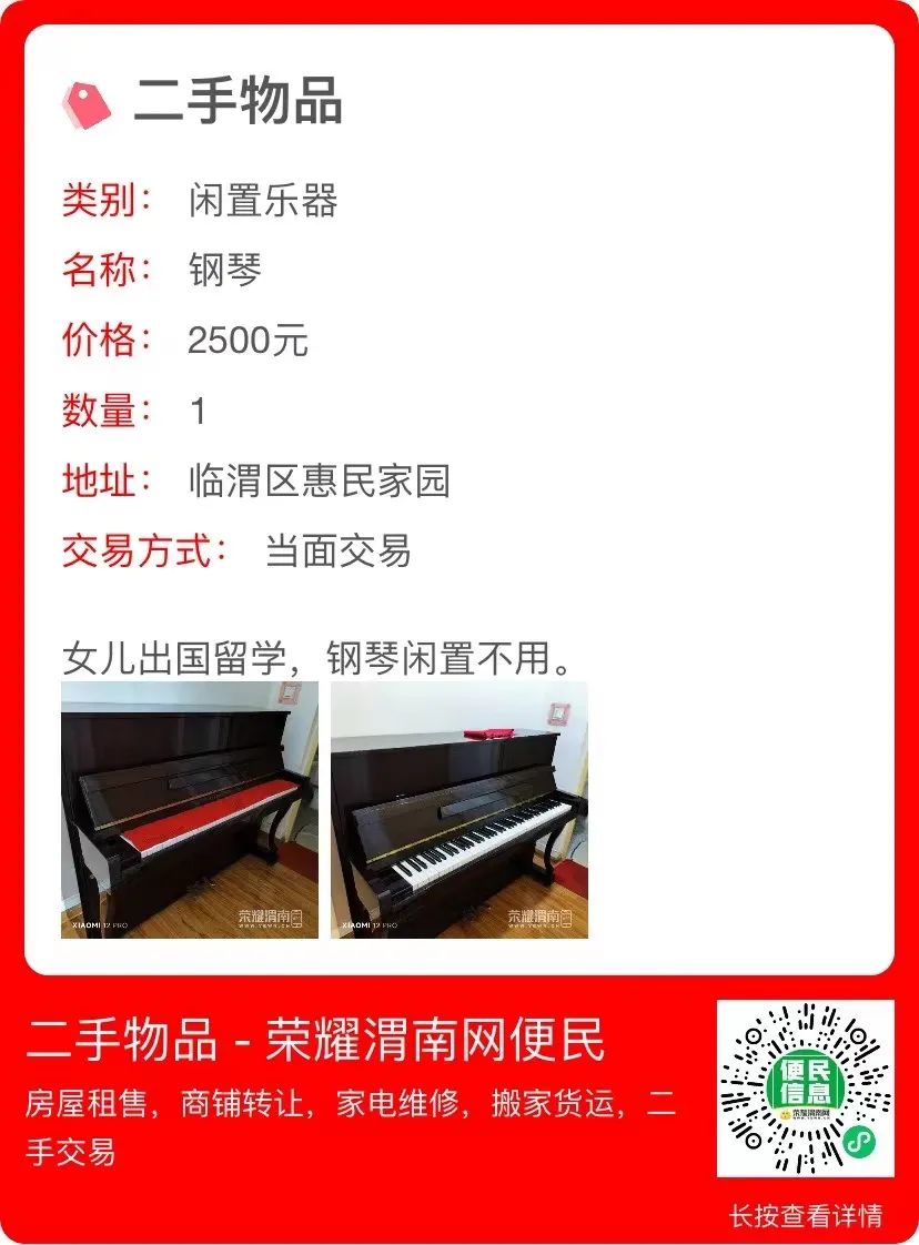 【10.21便民】50元餐椅/2000元苹果手机/2500元钢琴+宏帆广场、海兴锦绣花园等房屋出租信息!