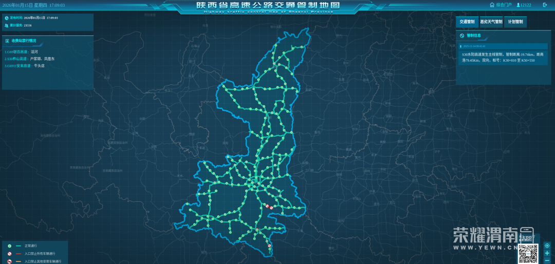 截至2026年1月15日17时,陕西省高速公路路况汇总