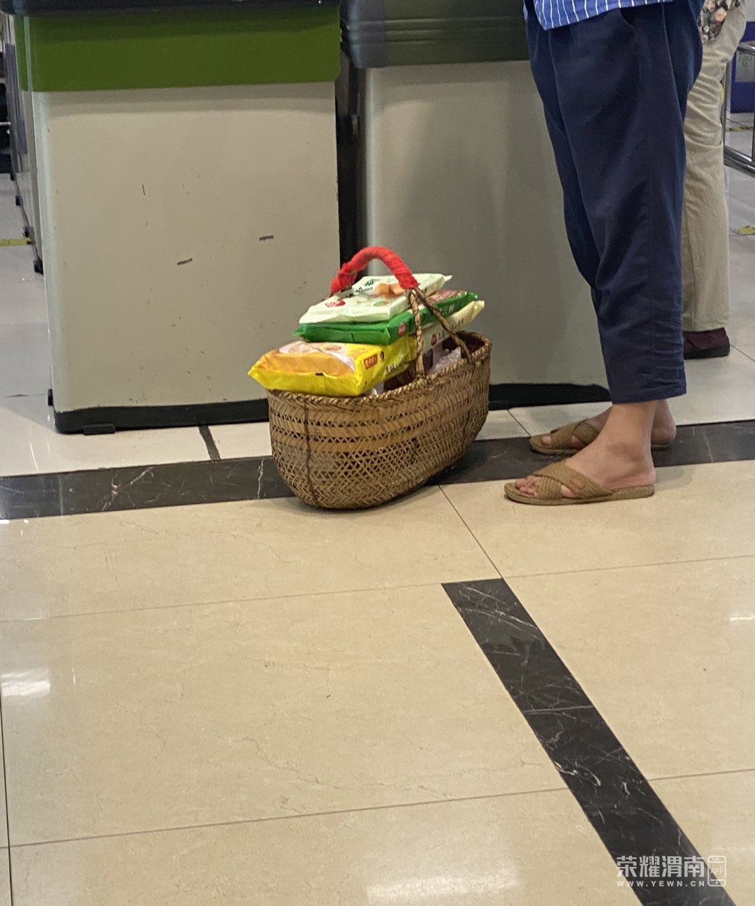 今天早上在华润遇见一个结账的大叔,在如今这个出门一身轻的时代,这位大叔实在太另类!人家不需要购物袋,用的是自己带的篮子。瞅瞅~多环保的。这个必须得有赞!